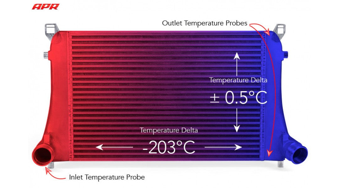 The tests quickly proved the long sought after OEM “upgraded” cooler (factory Golf R intercooler) showed minimal improvement over the standard GTI unit. However, the APR intercooler saw a dramatic difference that made a positive impact on performance.
