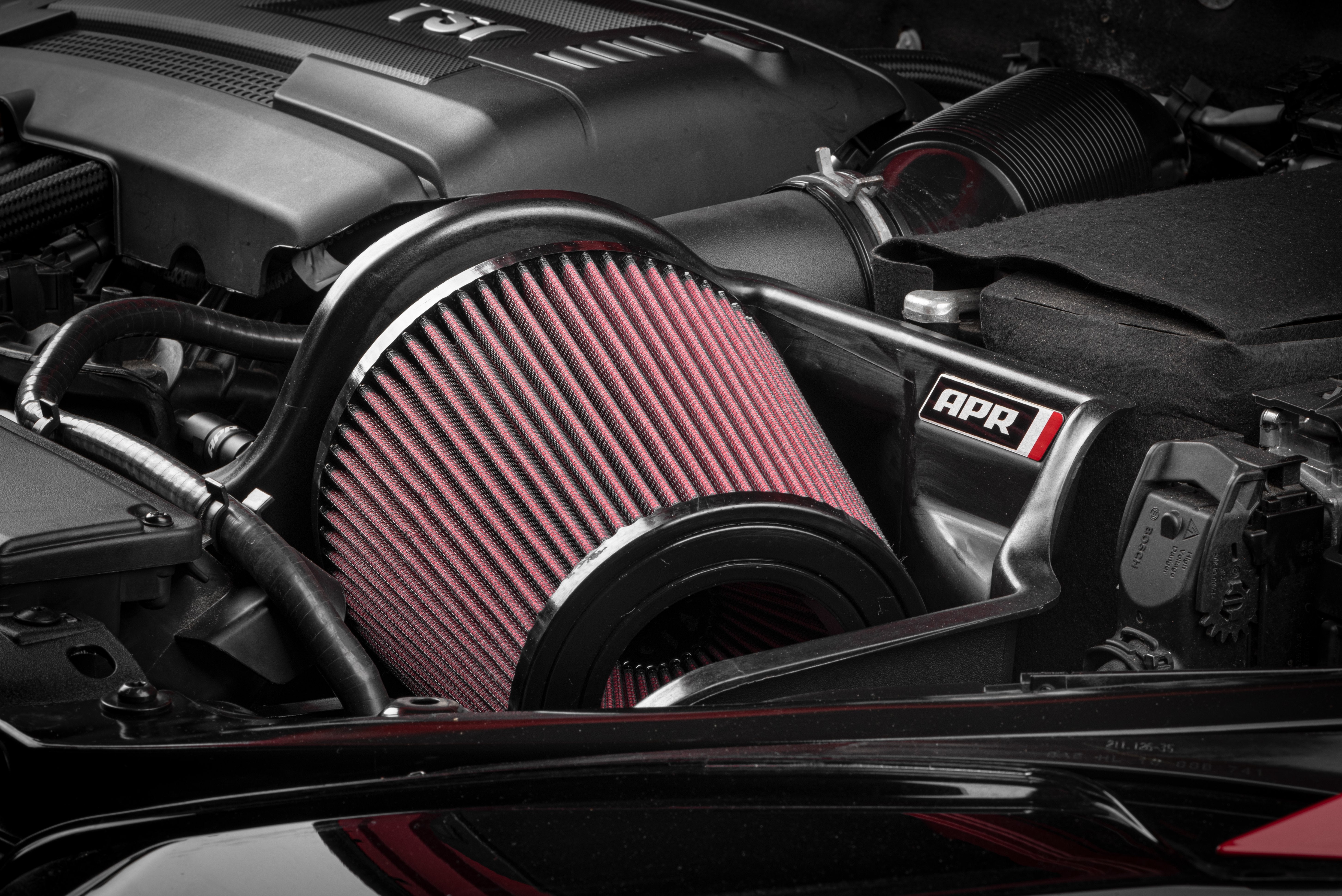 The APR Open PEX Intake System is the best dollar-per-horsepower intake system for the 1.8T/2.0T Engine. We've maximized performance and sound dramatically by reducing pressure drop and increasing airflow. This translates to more horsepower and torque, and less physical strain on the turbocharger. The system looks great, sounds amazing, and produces more horsepower and torque you can feel.Our Open PEX Intake System does away with the closed airbox design and uses a massive 7" washable and reusable cotton filter with a frontal inlet and 4" rear outlet. This was necessary to limit pressure drop across the factory system and maximize airflow, while allowing you to fully hear the engine breathe. The massive filter provides excellent filtration. By oversizing the filter, we're able to limit pressure drop without sacrificing filtration. This is made possible through the use of greatly increased filter surface area. The PEX material gives the intake an Oem feel and it allows us to make a complex and organic heat shield shape that keeps hot air pushed through the frontal radiator away from the intake tract. Lastly, PEX retains heat less than other materials such as metal, making it ideal for performance.