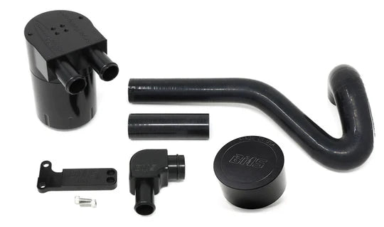 The solution to this problem has finally arrived. The BMS oil catch can. While there are other catch cans on the market they all fall short in various areas. Some are mounted on the hot/turbo side of the motor preventing proper vapor condensation. Others utilize hoses that are too small and runs that are too long to allow proper PCV ventilation causing internal motor/ring sealing issues. Some have insufficient or no internal baffle system while others have internal baffles systems that are too restrictive. Some even bypass the PCV system all together venting crankcase gas and odor to the atmosphere. Most are simply repackaged oil catch cans from smaller/lower power motors shoehorned into place in the turbo BMW engine bay.