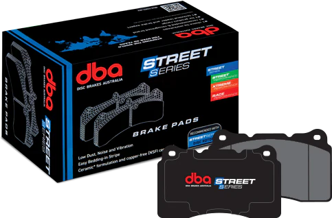 DBA recommends use with STREET SERIES plain or T2 slotted disc rotors for increased first application effectiveness and reducing bed-in time